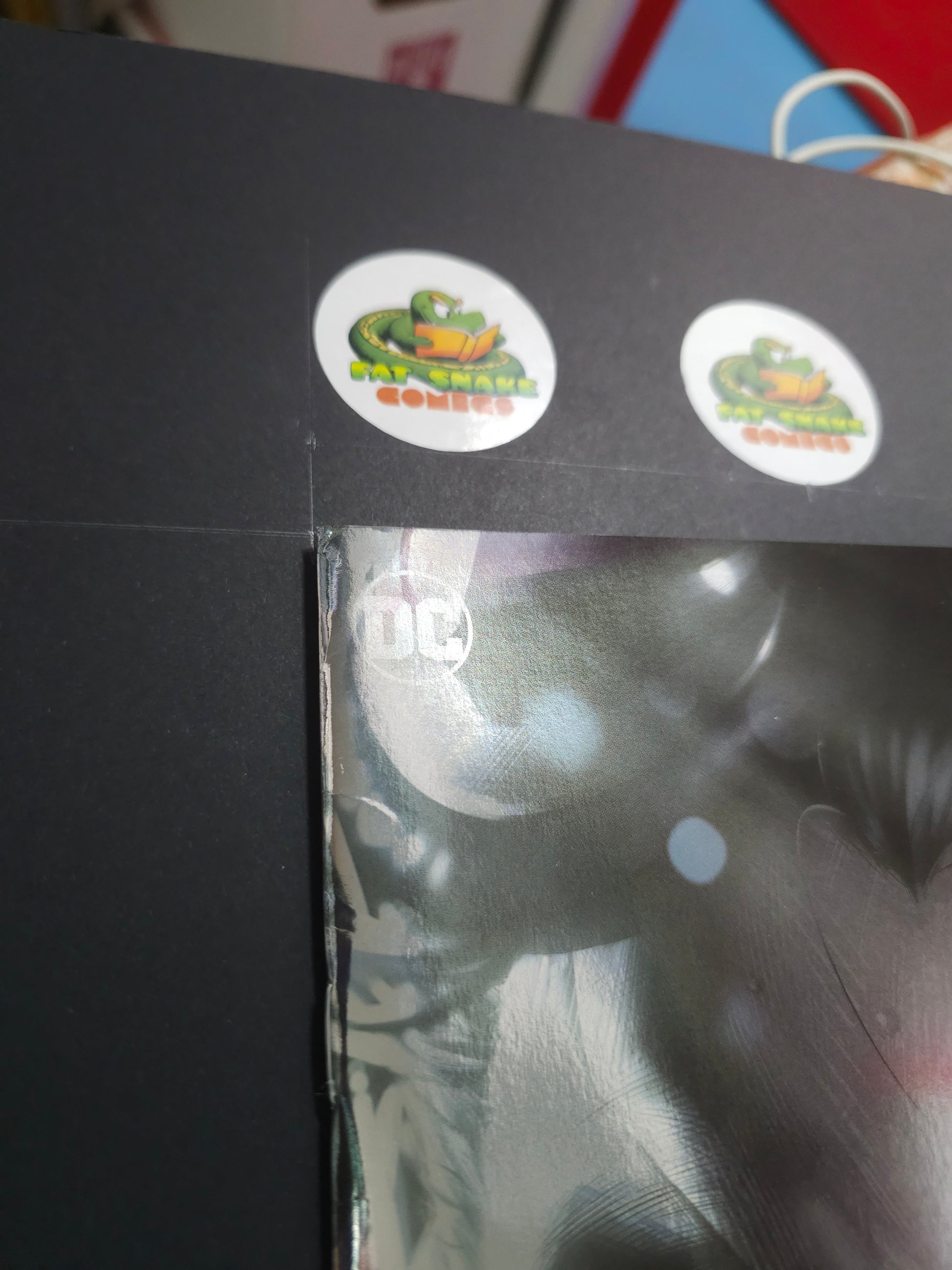 2 spine creases above top staple and a dent at the top spine corner.